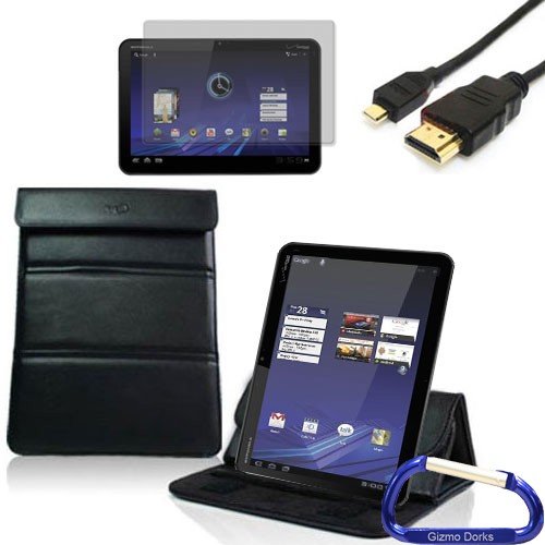 Gizmo Dorks Faux Leather Case / Stand (Black), Screen Protector, and HDMI Cable with Carabiner Key Chain for the Motorola Xoom Tablet Feature